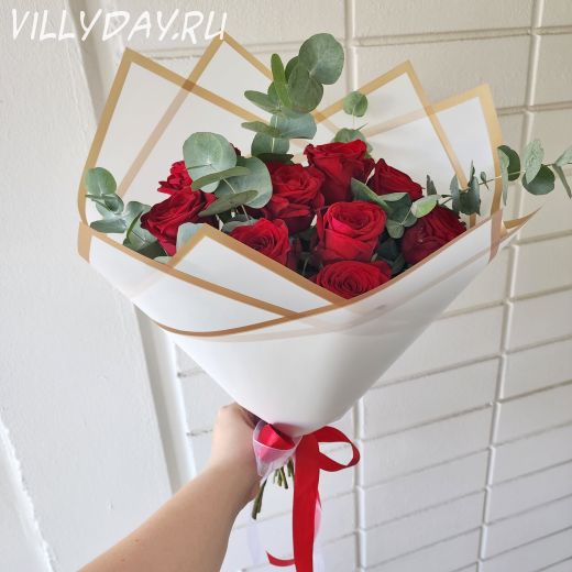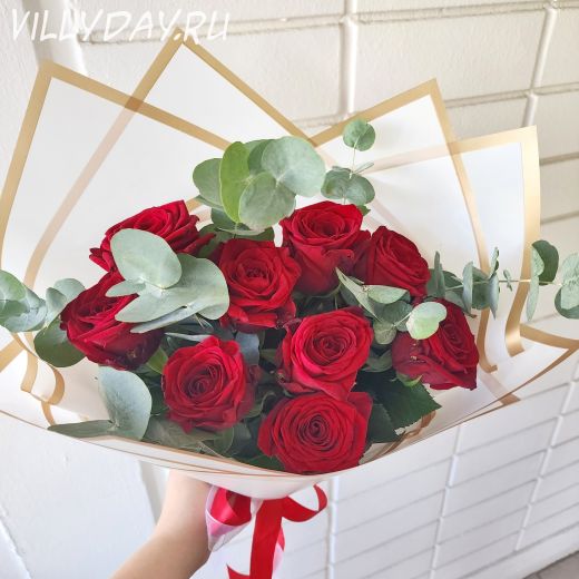 New! Букет "9 роз и эвкалипт"