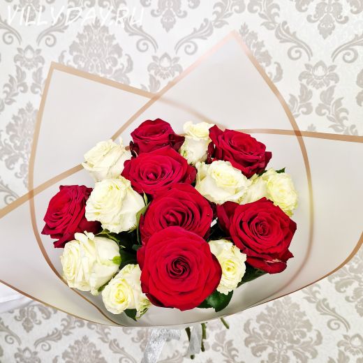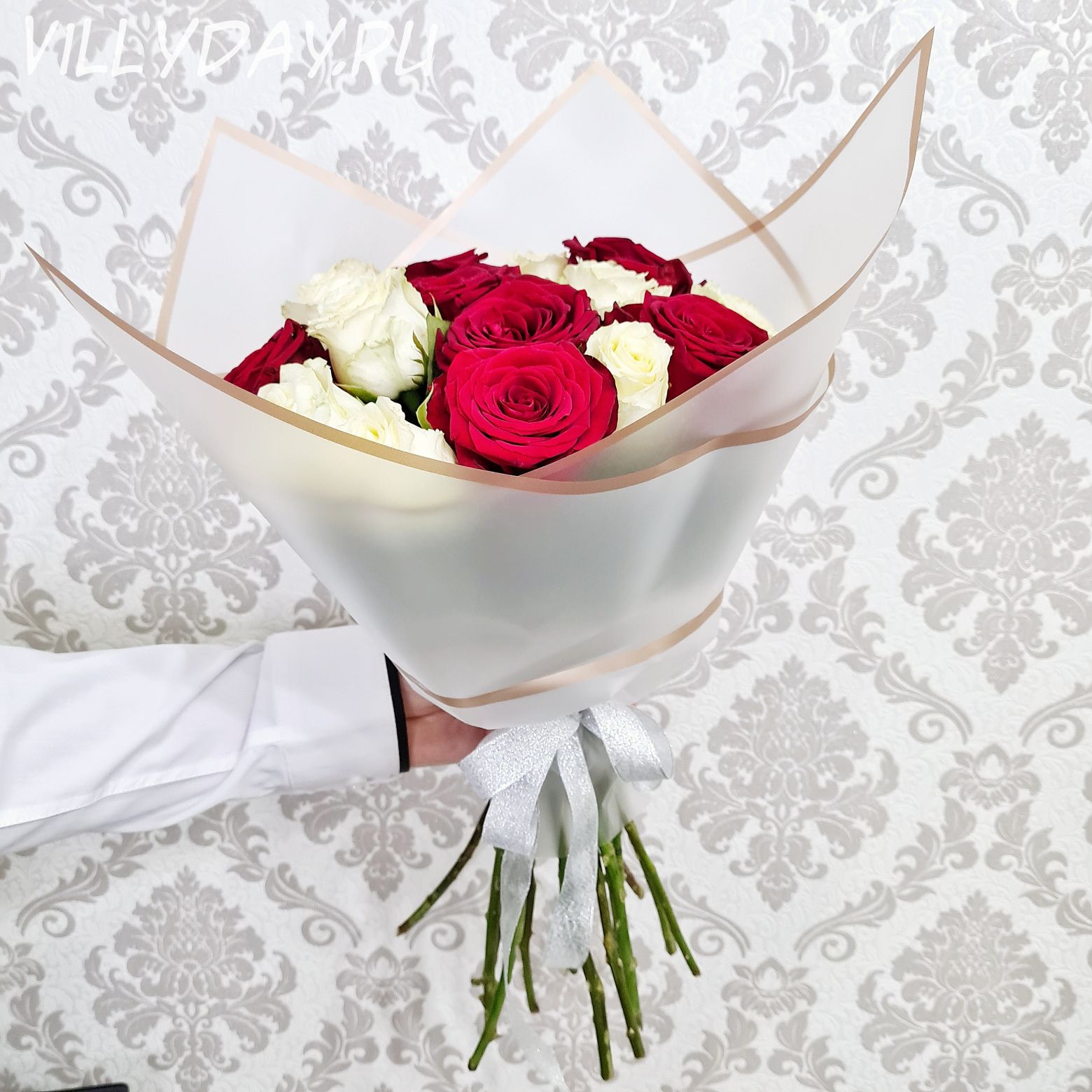 Букет из 17 роз (50см). Упакован в матовую пленку.