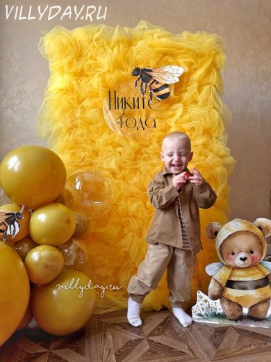 Высота стойки 1,5×1м.(можно увеличить по желанию). Надпись индивидуальная. Стойка с тканью,круг с надписью и фигурки- аренда(1-3 дня в зависимости от занятости декора на ближайшие дни). Шарики при желании можно оставить себе.
