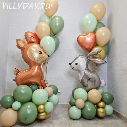 2 стойка и 2 фонтана (в каждом 6 латексных шаров, хром, сердце)