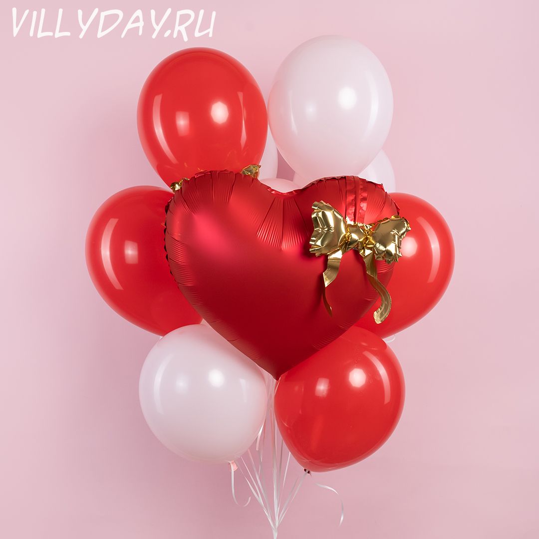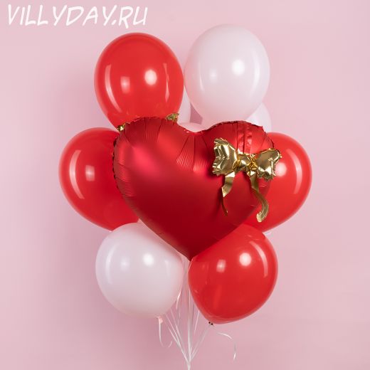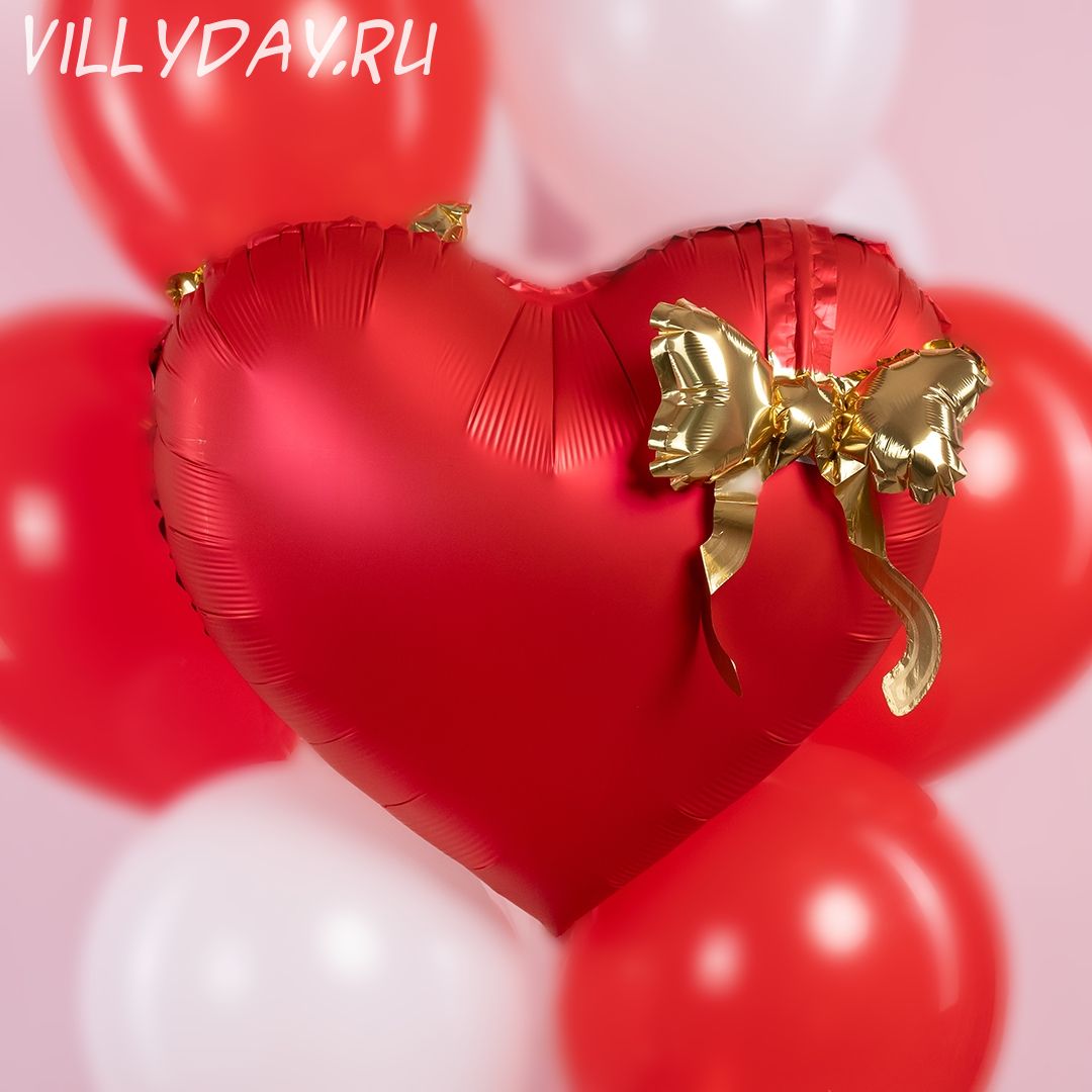 Сердце 22" красное с золотым бантом.Цена указана за 1 сердце.